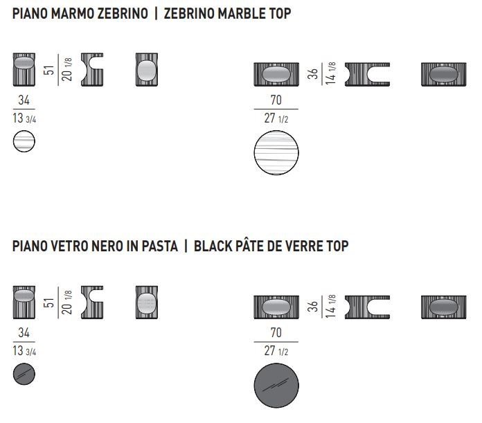 Available in two distinct heights, Boden can also be customized into different proportions, offering a slender side table or a more compact coffee table configuration to match your living space. The crowning glory of this coffee table is its top, uniquely clad in a Black pâte de verre or a Zebrino marble. The marble variant adds a touch of timeless elegance, its natural veins and swirls creating a unique piece every time.
