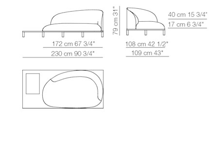 The rectilinear wooden platform, supported by low wooden legs, adds a touch of sophistication to the piece, elevating the upholstered seat above the floor plane. This platform creates a smaller frame within a larger context, much like the traditional tokonoma practice of displaying cherished items. The Bonsai Wooden Base sofa is available in various upholstery options and wood finishes, allowing you to customize it to suit your personal style.