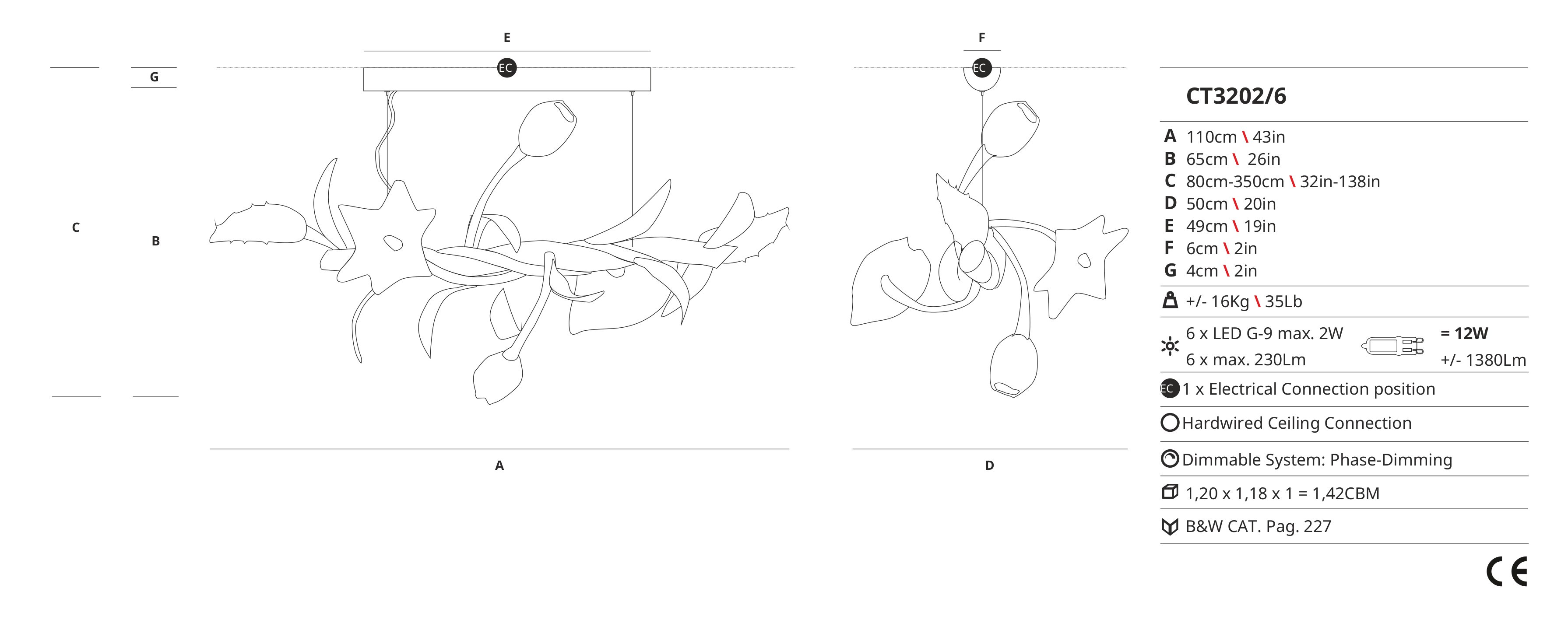 Inspired by floral themes and natural patterns, the Bouquet Ct3202/6 pendant lamp is perfect for those who appreciate beautiful and unique design elements. Whether you have a classic or modern interior style, this stunning piece will add a touch of sophistication to your home. Bring the beauty of a garden into your space with this exquisite pendant lamp.