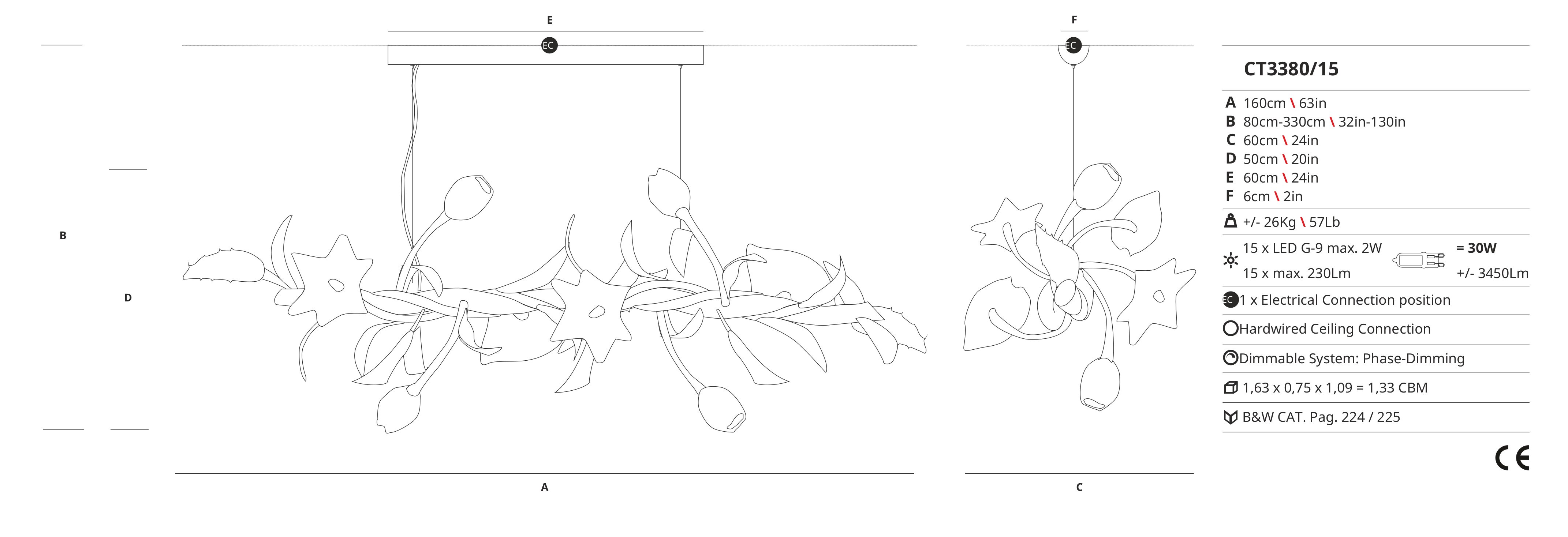 The direct light provided by the halogen bulbs illuminates your space with a warm and inviting glow, while the dimmer feature allows you to customize the ambiance to suit your mood. Whether you’re looking to add a touch of nature-inspired beauty to your living room, dining area, or bedroom, the Bouquet Ct3380/15 pendant lamp is the perfect choice.