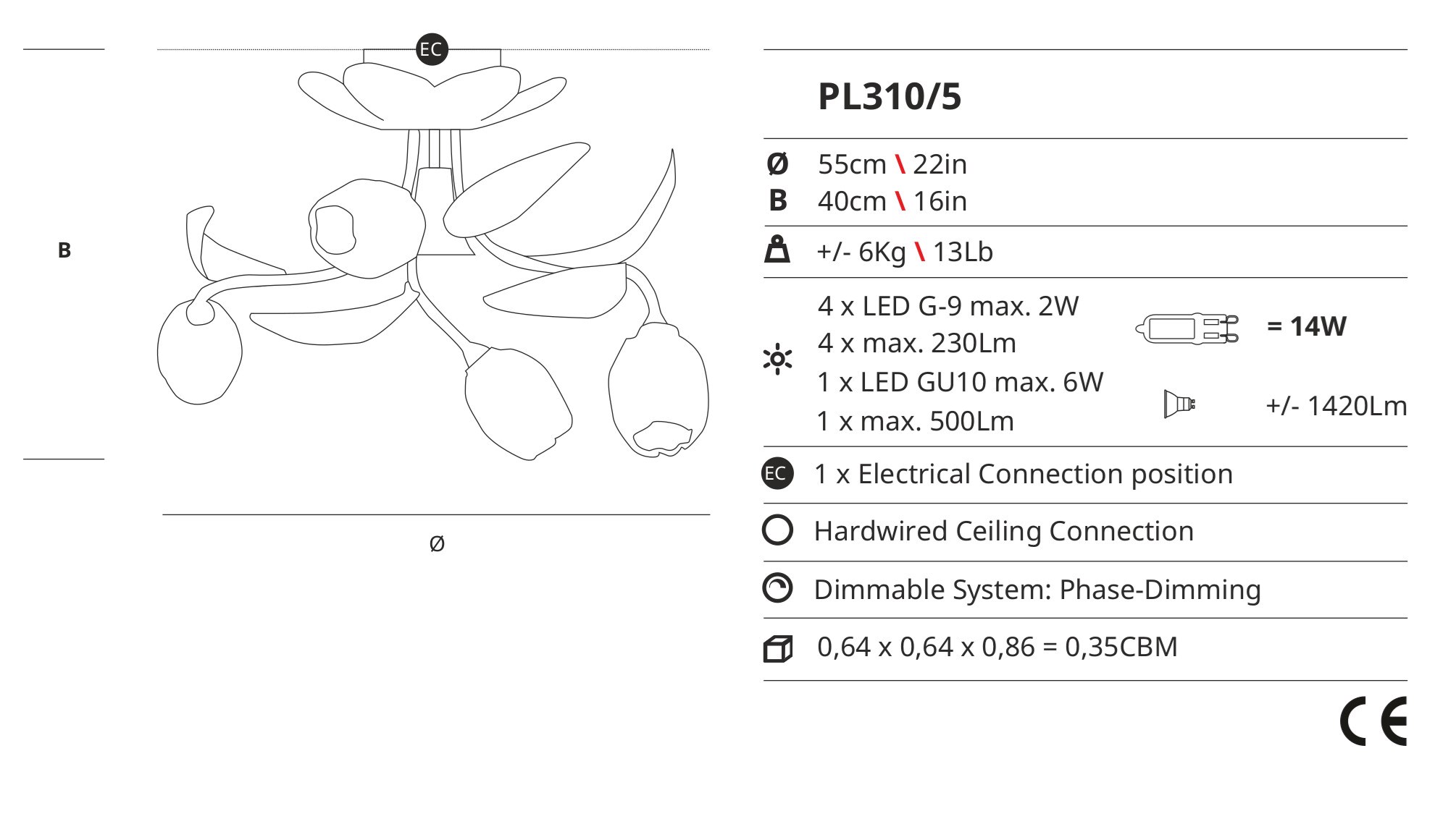 With the option for both halogen and LED light bulbs, the Bouquet PL310/5 offers versatile illumination to suit your preference. The addition of a dimmer allows you to adjust the brightness to create the perfect ambiance for any occasion. Whether you’re looking to add a touch of charm to a traditional setting or a contemporary flair to a modern space, this ceiling lamp is sure to impress.