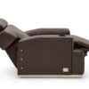 Indulge in the ultimate relaxation experience with the Bourbon armchair from Italy. This modern piece exudes luxury with its leather upholstery in Chestnut and Dark Mocha, accentuated by a white gold base and light gold accents. Designed for maximum comfort, Bourbon features electric motion, a massage system, cooling device, and a convenient service light. The included footstool and headrest add extra support, while the high back provides added comfort. Perfect for unwinding after a long day, Bourbon is the epitome of elegance and sophistication.