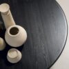 Crafted with precision and attention to detail, the Bourgeois table features a base made of sandblasted cast iron, providing stability and durability. The top is available in two stunning options: dark stained and natural-oil finished solid canaletto walnut or dark charcoal-grey stained and natural-oil finished ash. Each top is unique, showcasing the natural beauty of the wood and adding warmth to any room.