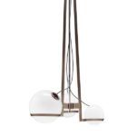 The Bubble Bobble floor lamp features three glass spheres in varying shades and sizes, supported by delicate metal strips that give it a light and airy aesthetic. The design is inspired by soap bubbles, creating a playful and whimsical atmosphere in any room.