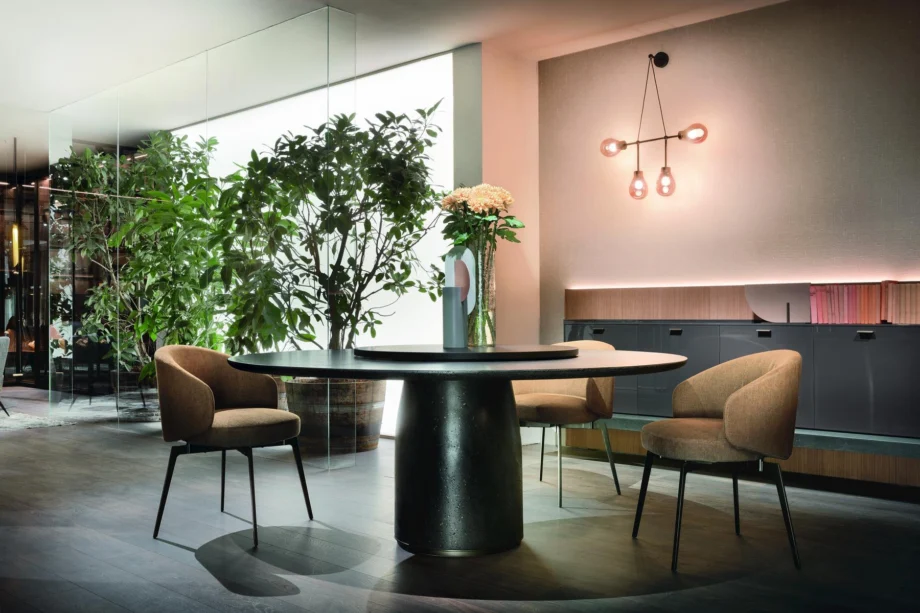 With its elegant Nero Belgian Blue finish and bronze-coated metal detailing, the Bulè table exudes sophistication and style. Available in two sizes, this table is a true statement piece that will enhance any dining space. The innovative design of the Bulè table reflects Lema’s commitment to global design trends and cultural influences.