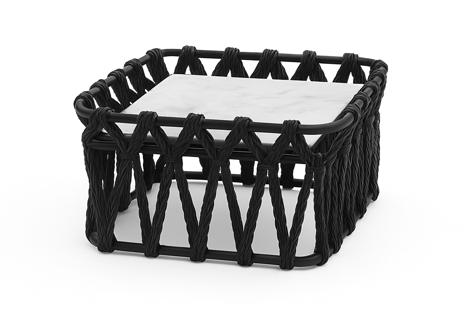 The Butterfly collection features a range of shapes and sizes, including round, square, and rectangular tables, as well as a small table to suit any outdoor setting. The intricate weave pattern of tortora-colored polyethylene fibers wraps around the sleek grey painted aluminum frame, creating a unique and eye-catching design.