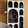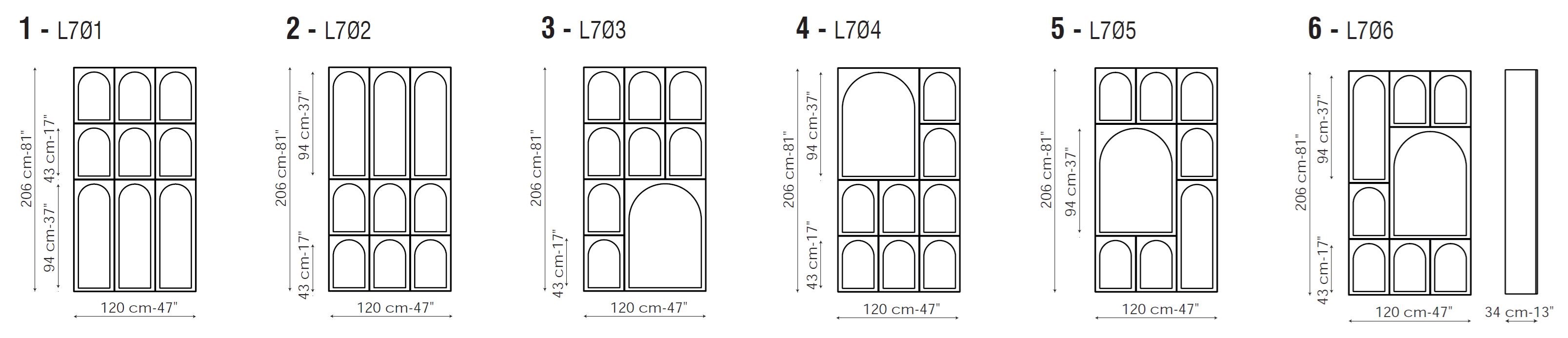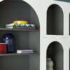 This wall-mounted, modular bookcase transforms into an architectural marvel of your own design, a display of personal creativity. Comprising six mix-and-match modules, this bookcase invites you to customize it to your own décor needs. Each module offers a facade and multiple windows and niches, waiting to hold and highlight your favourite books, art pieces and precious ornaments.