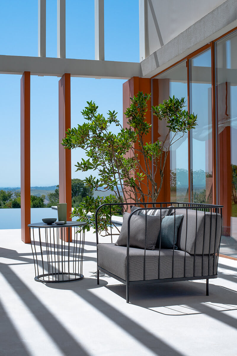Cannolè is more than just a sofa; it’s a style statement that harmoniously blends into contemporary, classic, or even country environments. The robust metal frame, combined with high-quality fabrics for the cushions, ensures both durability and comfort, as well as suitability for outdoor use. Its resistance to UV rays, water, and salt makes it an ideal choice for terraces and patios, offering luxury and functionality without compromise.