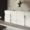 The Canova living room set features melamine facades and a multi-layer marble lacquer finish, creating a sleek and polished look that will enhance any living room. The chairs are upholstered in eco-leather, adding a touch of luxury to the set, while the chrome decor elements provide a modern and sophisticated aesthetic.