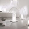 The Cell lamp is made with metallic string lacquered in a crisp white tone, with a diffuser in white linen, creating a soft and inviting glow. Available in two variations, the Cell M612B and M613B table lamps are perfect for adding a touch of style to your outdoor decor.