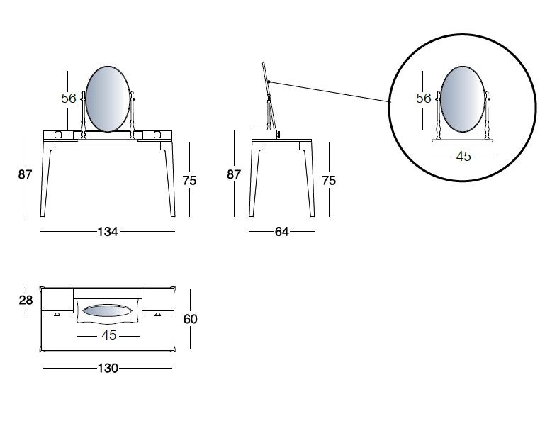 Crafted from premium veneer and metal, Charlize is available in a range of sumptuous finishes, including glossy lacquered wood, matt ebony, Canaletto walnut, Sucupira Luxury, and Wenge. The leather-covered writing desk and drawer interiors add a touch of elegance, while the mirror frame and base come in various leather finishes to suit your style. The turned metal structure is available in a selection of finishes, such as bright light gold, matt Champagne gold, and more, offering customization options to complement your decor.