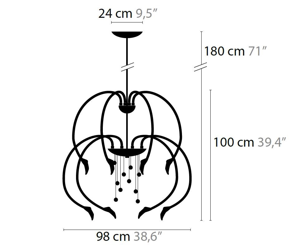 The Chill Out H12 pendant lamp is available in a variety of colors to suit your style and décor preferences. Whether you choose the version without Swarovski crystals for a minimalist look or the one with the dazzling crystals for a touch of glamour, this pendant lamp is sure to make a statement in any room. The base of the lamp accommodates 12 G9 bulbs, providing ample lighting for your space.