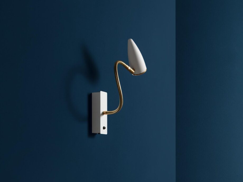 The CicloItalia Flex W1 features a sleek black or white varnished metal base, complemented by brass flex and details for a touch of luxury. The adjustable swing arm allows you to direct the LED light source with precision, providing a warm and inviting ambiance in any space.