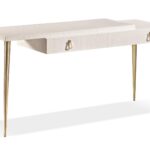 The drawers are adorned with jewel-like bronze or golden handles, adding a dash of opulence that enhances the vintage look of the piece. These charming details are a testament to the designer’s attention to detail, making these tables not just a functional piece of furniture, but a captivating work of art.