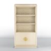 The Clark bookshelf features a stunning back panel with intricate low relief decoration, adding a touch of artistry to your living space. The brass handles further enhance the beauty of this piece, giving it a refined and polished look. Available in a captivating Ivory/Gold finish, the Clark bookshelf is sure to make a statement in any room.