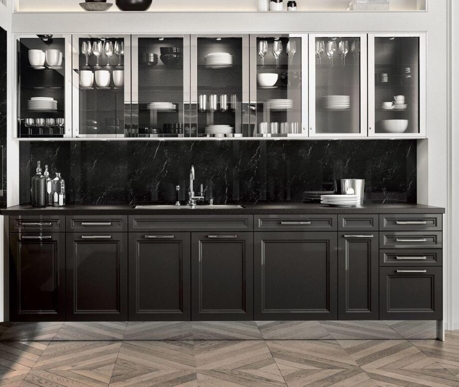This linear kitchen design is both functional and fashionable, offering ample storage space and a seamless workflow for your cooking needs. The attention to detail in the craftsmanship of the cabinets and hardware is evident, creating a harmonious blend of form and function.