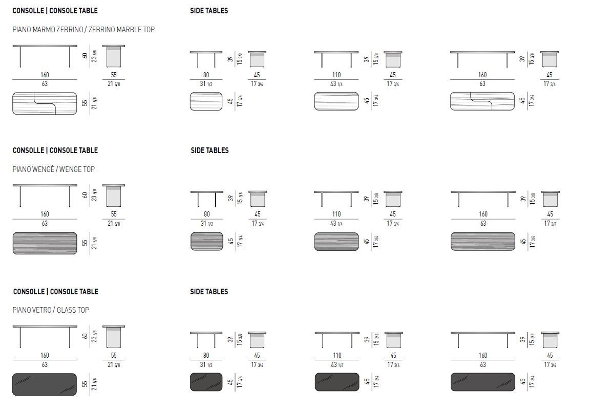 The beauty of the Clive console lies in its intricate details, from its satin aluminium blades in Malt colour that give it an ethereal touch, to the square top with rounded corners that speaks of refined sophistication. The top comes in three variants – Zebrino marble, Black back-painted glass or Moka lacquered brushed wenge, each embraced by a satin metal band in Malt colour, framing it like a crown.