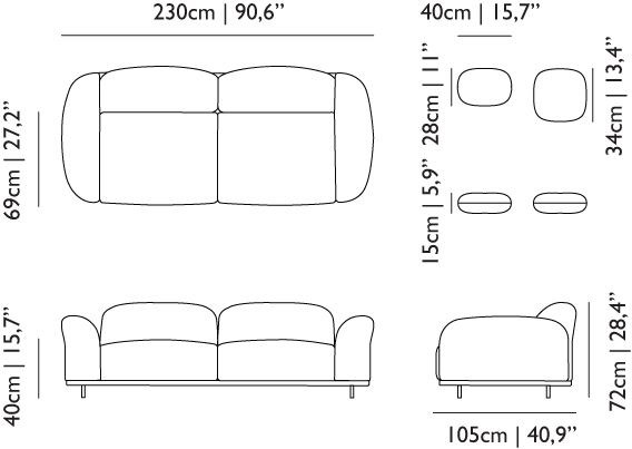 The Cloud Sofa is a true masterpiece that captures the essence of beauty and functionality. Its rounded shapes and soft white cushions create a welcoming and inviting atmosphere in any living space. The foam parts are expertly connected to the base with steel connections, ensuring a secure and comfortable seating experience.