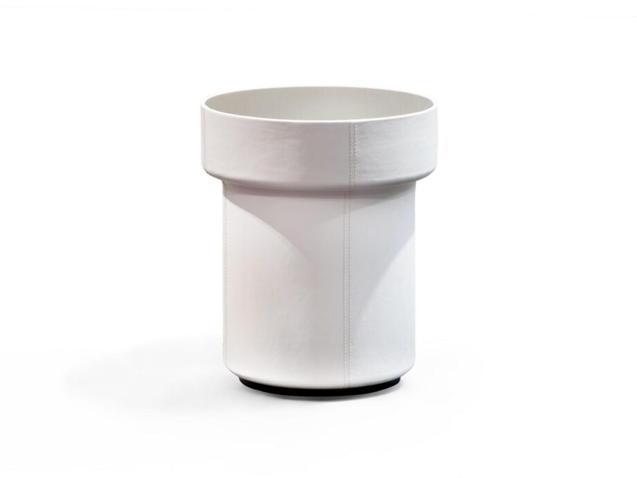 Pair the Coil Central table Low with the Coil Side table high to complete the look. The Side table high boasts a leather structure in Oyster with exquisite tone-on-tone sewing, creating a harmonious contrast. The reflect bronze top and dark semiglossy base enhance the modern aesthetic, making it a stylish addition to any lounge or bistro space.