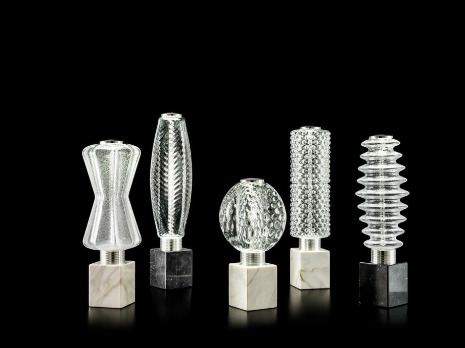 Elevate your interior space with the exquisite Collier T1800/lp2 table lamp designed by the renowned Marc Sadler. This modern masterpiece exudes elegance and sophistication, making it the perfect addition to any home or office setting. Crafted in Italy, the Collier table lamp features a stunning blown glass diffuser available in a variety of captivating hues, complemented by a luxurious base made of Calacatta or Marquina marble.