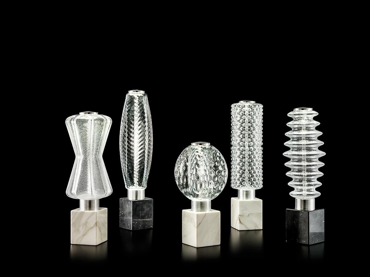 Introducing the Collier T1800/lp6 table lamp, a stunning piece designed by the renowned Marc Sadler. This modern masterpiece combines elegance and functionality, making it the perfect addition to any interior design enthusiast’s collection. Crafted in Italy, the Collier table lamp features a sleek blown glass diffuser available in a variety of captivating shades, complemented by a luxurious base in Calacatta or Marquinia marble.
