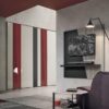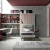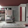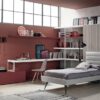 Featuring a Fortebraccio shelf with an integrated corner desk, a clothes clean unit, a soft headboard with an erupted Vaschetta bed frame, a Joy occasional table, a Kelly sliding door wardrobe, and a Diagonal TV panel, Composition 01 offers a complete set of furniture that is both functional and aesthetically pleasing. The red shades paired with white create a vibrant and playful atmosphere, perfect for creating a space that reflects your child’s personality and style.