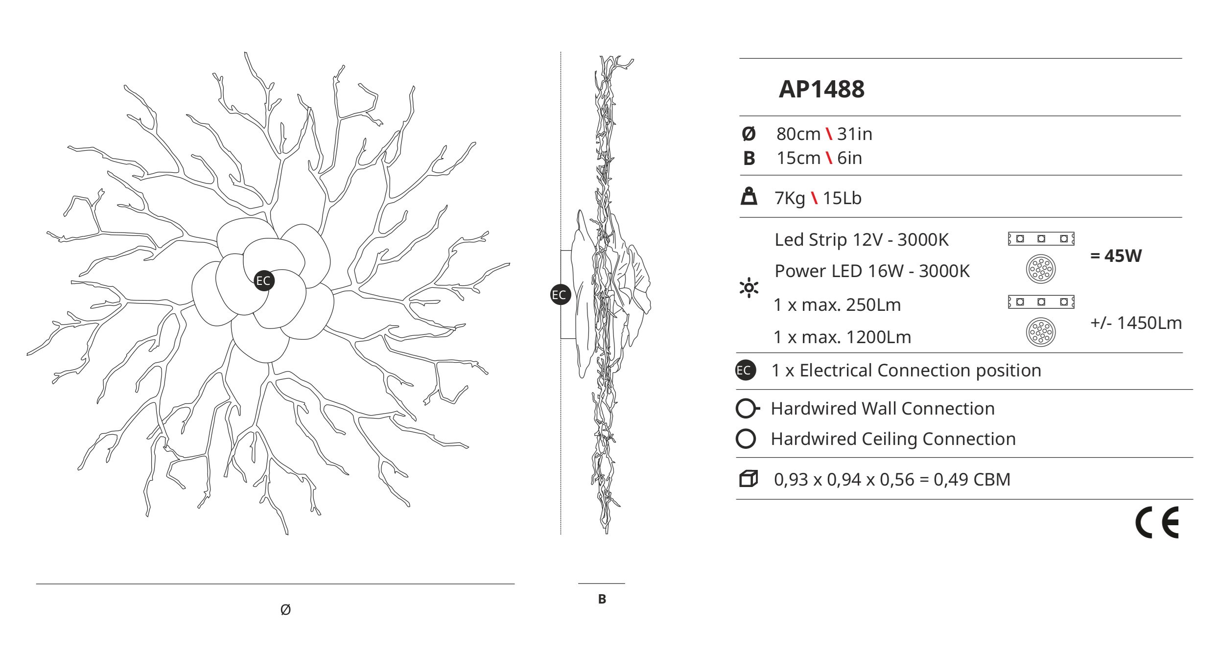 Perfect for areas with high ceilings or open layouts, the Coral AP1488 wall lamp is ideal for those who appreciate beautiful and distinctive lighting fixtures. The LED lighting system provides direct light that creates a warm and inviting ambiance, making it a stylish addition to any room.
