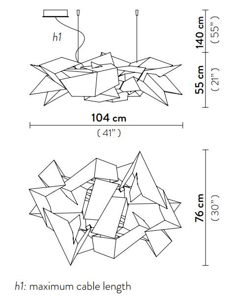 The Cordoba pendant lamp features a series of intricate sections that create a mesmerizing interplay of light and shadow. The flat sheets of techno-polymer material are expertly crafted to diffuse light throughout the structure, providing a warm and inviting glow. Whether viewed as a whole or from different angles, Cordoba offers a dynamic and ever-changing visual experience that captivates the senses.