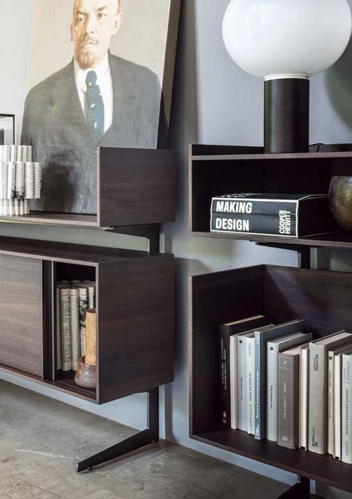Each component of the Court Yard bookcase collection is meticulously designed with precision and attention to detail. The metal feet add a contemporary touch, while the wooden tops and storage units bring warmth and elegance to any room. The sliding doors feature sleek aluminum handles, adding a touch of modernity to the overall design.