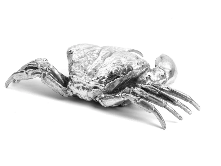 Whether displayed on a shelf, table, or mantel, the Crab is sure to spark conversation and admiration from all who behold its beauty. Its shimmering aluminum finish adds a touch of glamour and sophistication to any decor, making it a must-have for those who appreciate exquisite design and craftsmanship.