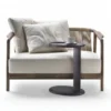 Designed for restaurants seeking a touch of sophistication, the Crono small sofa showcases a hand-woven seat back made from luxurious cowhide cord. Three sumptuous cushions filled with soft goose down provide exceptional comfort, while the seat cushion is crafted from polyurethane foam for lasting support. Whether used alone or paired with other seating options, the Crono small sofa makes a statement in any space.