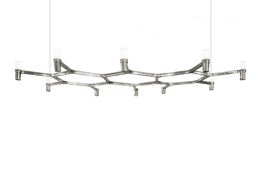 With its universal light distribution, the Crown Plana offers a perfect blend of direct and indirect lighting, creating a warm and inviting ambiance in any room. The NEMO LED G9 pack ensures energy-efficient illumination, while the option for halogen bulbs provides a customizable lighting experience. The die-casted aluminum structure and sandblasted glass diffusers add a touch of elegance to this contemporary chandelier.
