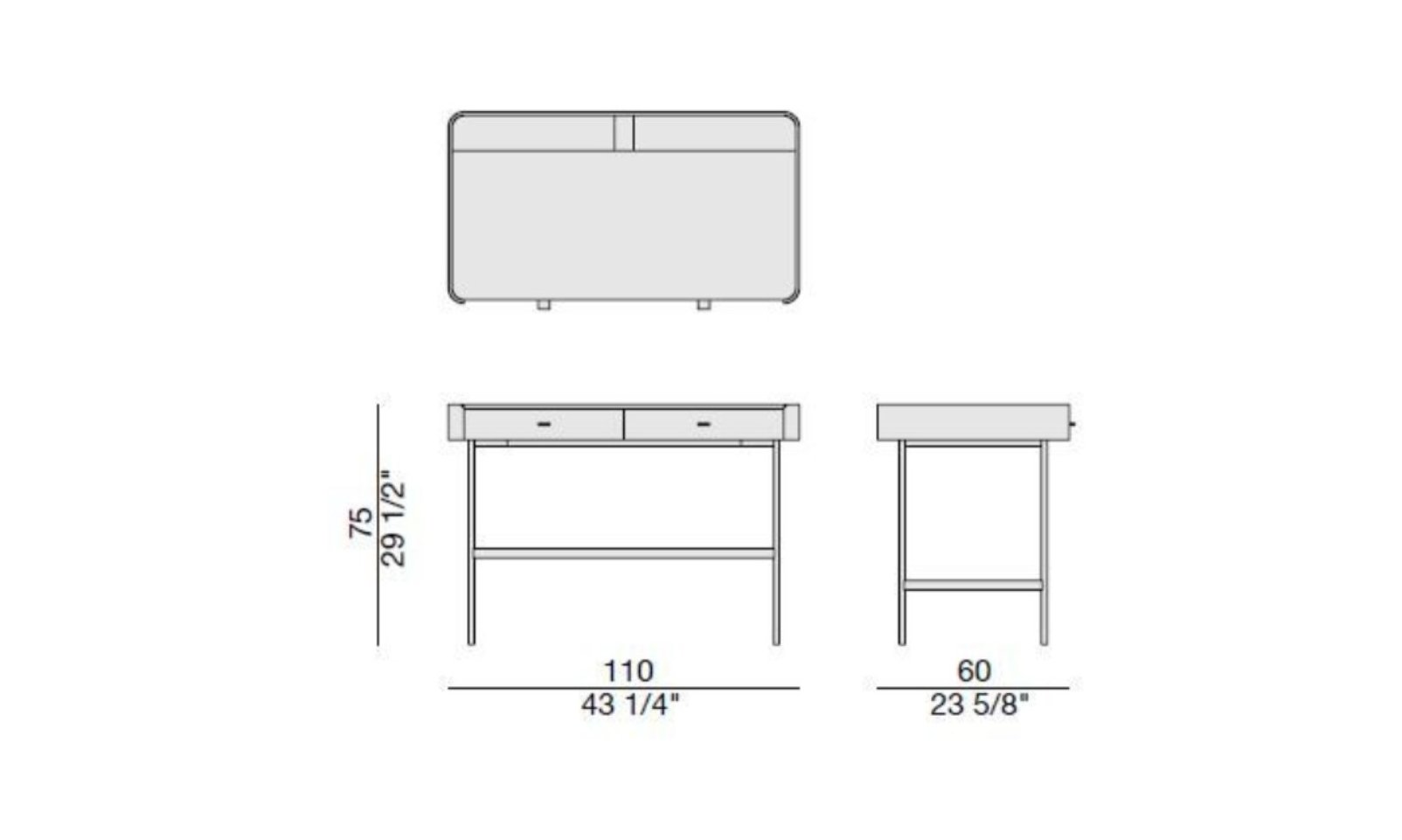The desk features a top in Cuoietto calfskin, adding a touch of refinement to the piece. Two storage drawers with chic handles in Cuoietto leather provide ample space for organizing your essentials, while the base is covered in microfiber for a stylish finish. The Dafto desk also includes two holders with push-pull opening for managing cables and cords, offering a practical solution for your technology needs.