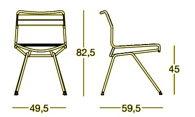 The unique collapsed steel tube outline of the Dan 2057 chair is simple yet striking, with individual parts that seamlessly come together without the need for screws, making it easy to set up and dismantle. The seat and back of the chair are made of flexible straps stretched directly on the frame, offering superior comfort and support. These straps, made of polyester yarn in various tones such as yellow, beige, anthracite, and blue, feature a distinctive diagonal 3D surface that adds a modern touch to the design.