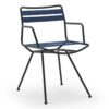 The chair comes with armrests for added comfort and functionality, making it the perfect choice for lounging or dining. The seat and back of the chair are made of durable elastic straps, offering superior support and comfort. The straps are available in a range of colors, including yellow, beige, anthracite, and blue, allowing for customization to suit your personal style.