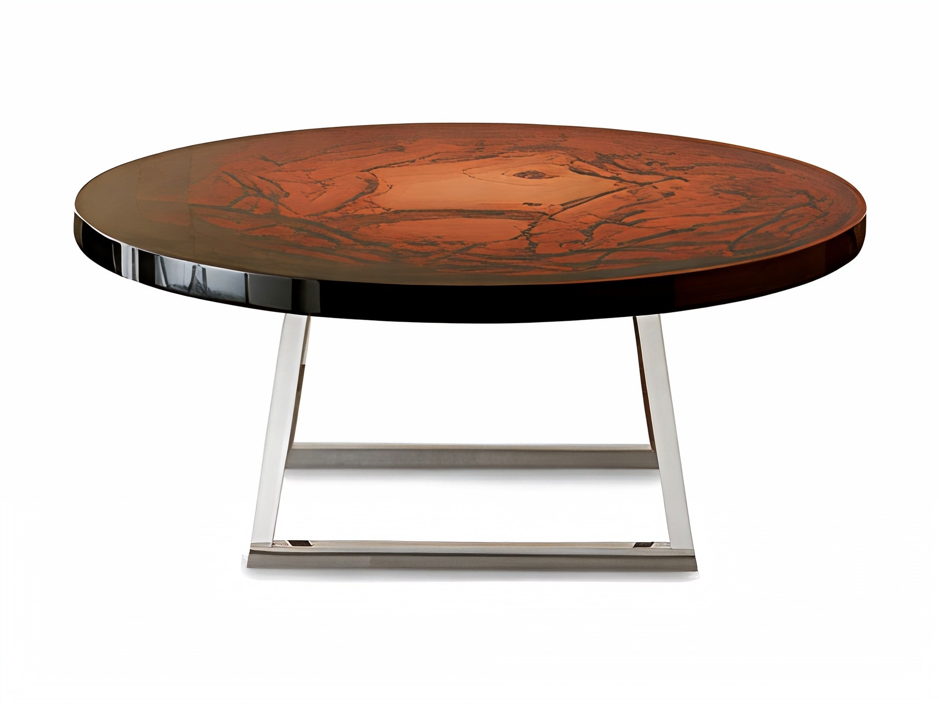Drawing inspiration from the refined elegance of Art Deco and the clean lines of Modern design, Decoro Round seamlessly blends timeless sophistication with contemporary flair. Its sleek, round silhouette provides a perfect focal point for any dining room, living area, or high-end hospitality setting, inviting conversation and creating an atmosphere of understated luxury. The meticulous hand-painted details catch the light, revealing subtle textures and depth that only true artistry can achieve.