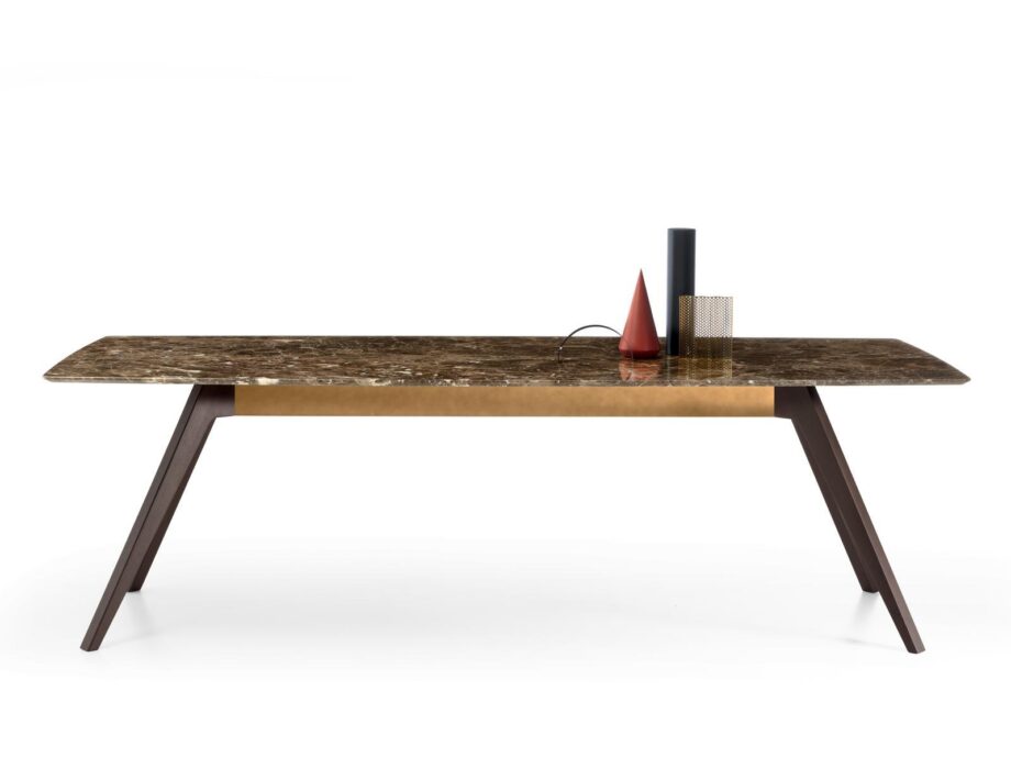 Introducing Delta, a stunning modern table that exudes elegance and sophistication. Crafted from luxurious natural stone, this table features a sleek marble top supported by wooden legs, creating a harmonious blend of materials.