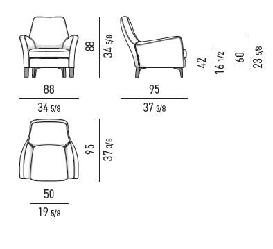 The Denny armchair’s tailored finishes express the values of handcrafted virtuosity, hinting at a timeless attraction. Its armrests are a nod to tradition, while the Pewter-colored die-cast aluminum feet are a tribute to modern technology. This blend of old and new creates a sophisticated design that enhances the aesthetic value of the product.