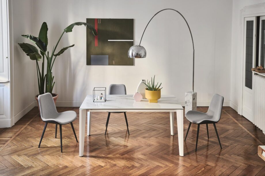 Available in various sizes, the Diamante table offers versatility and functionality to suit your needs. The top is available in a range of materials including melamine, lacquered MDF, glass, anti-scratch glass, and Crystalceramic, ensuring durability and style. The extendable design allows you to easily accommodate extra guests or create more space when needed.