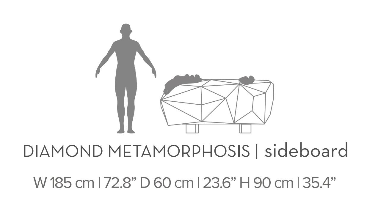 Elevate your home décor with our Diamond Metamorphosis, an iconic limited edition gem in our collection of sideboards. This luxurious piece is a testament to the timeless beauty of evolution, echoing the metamorphosis process commonly associated with insects. Designed for discerning homeowners who appreciate the aesthetic merger of philosophy with fine art, our sideboard exudes a sense of exclusivity and luxe style.