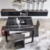 The Diamond table is a true work of art, featuring a frame in a sleek copper finish and a choice of marble tops, including the exquisite Sahara Noir. The table’s structure is expertly crafted from aluminum and polyurethane inserts for added stability, ensuring both form and function in one stunning piece.