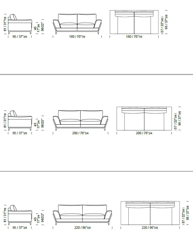 The rich fabric upholstery is gracefully framed by a precious leather frame, making Diderot a versatile addition to your home. The seat cushions are removable and made of 30 Kg/m3 density polyurethane foam, covered with a layer of polyester fibre for that extra plush feel. The backrest cushions, also removable, are crafted from 25 Kg/m3 density polyurethane foam, again covered with polyester fibre ensuring maximum comfort.