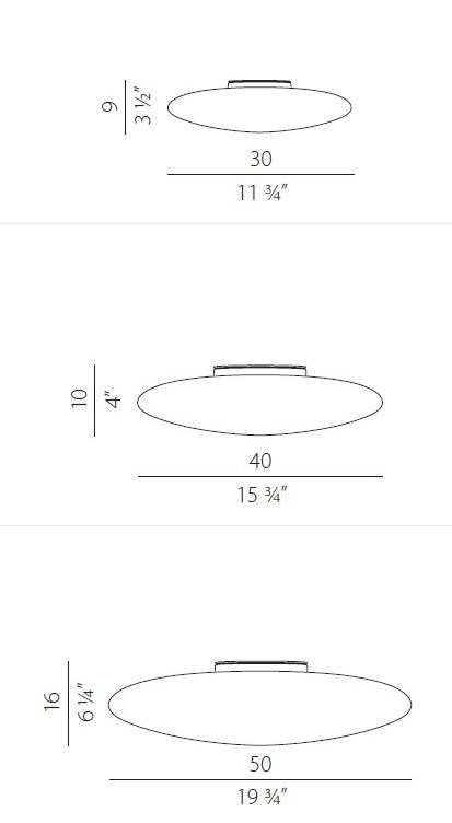 Crafted from mat blown glass, the Disco wall lamp exudes elegance and style. The invisible white metal part complements the design for the 30 cm and 40 cm sizes, while the visible white metal part adds a unique touch to the 50 cm size. The sleek and minimalist design of the Disco lamp makes it a versatile choice for any interior space.