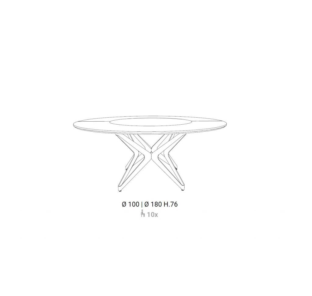 The centerpiece of this exquisite table is the innovative Lazy Susan spinning tray, which allows for effortless movement and interaction among guests. The table’s top rotates 360 degrees around its vertical axis, creating a dynamic and engaging dining experience. The ceramic top is adorned with intricate finishes, adding a touch of luxury to any room.