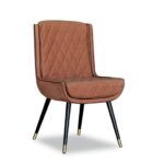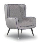 The Dolly sofa features a base in semi-gloss black-stained beech with feet that end in satin brass, hand-finished burnished metal, or satin nickeled metal, giving it a touch of elegance. The cushions and border upholstery showcase a special square quilting design, adding a beautiful texture to the piece. The decorative piping in the same shade of leather enhances the overall look of the sofa, creating a cohesive and polished finish.