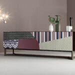 Immerse yourself in the awe-inspiring beauty of the Doppler K sideboards, and transform your home into a modern design haven. Its captivating optical illusion design, created by the brightly colored graphic patterns, and the unique asymmetrical door opening will surely be a conversation starter.