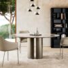 Crafted with a sleek metal base and a luxurious ceramic top, the Dora table exudes sophistication and style. Available in a range of colors and textures, the ceramic top is both durable and visually striking, adding a touch of character to any room. The central leg features a glossy black chrome profile, adding an extra layer of elegance to this already stunning piece.