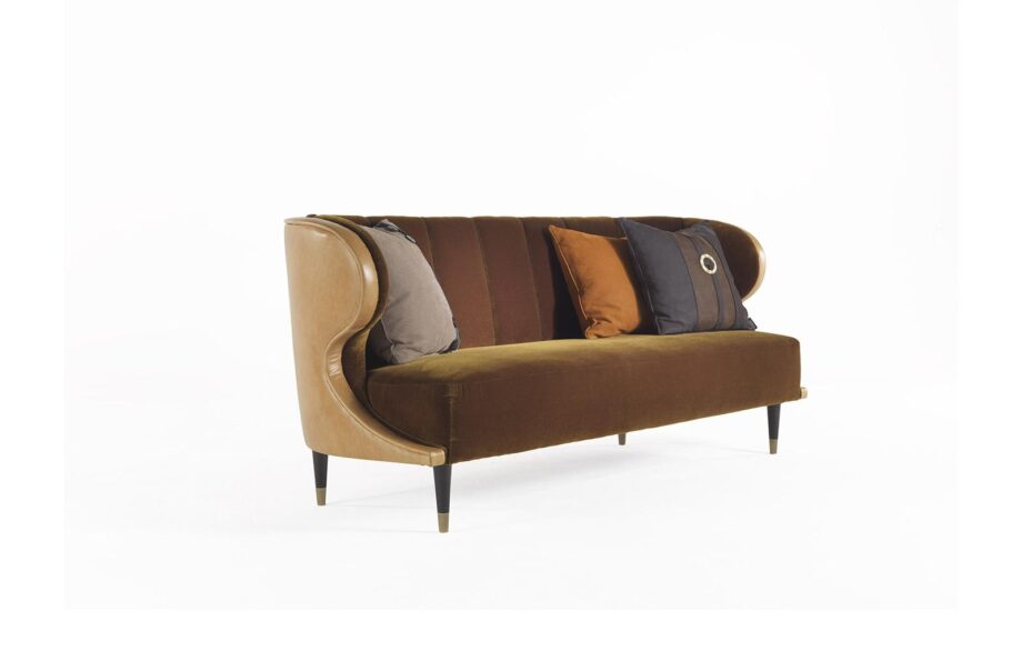 The sophisticated legs are finished in a stunning tanned brass that adds a touch of elegance to the overall design. Whether you’re lounging with a book or hosting a gathering with friends, the Dunlop sofa is sure to impress with its timeless charm and exceptional quality.