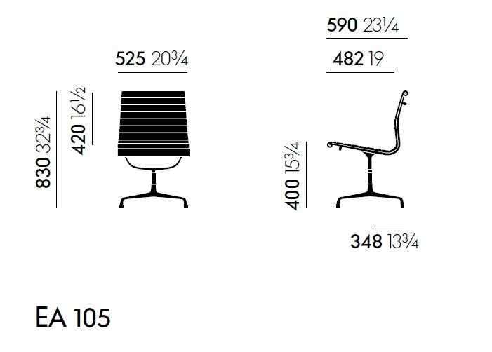 The chair features a sleek 4-spoke base, upholstered with high-quality fabric for ultimate comfort and luxury. Its medium-high backrest provides ample support, while the aluminum base adds a touch of contemporary flair. The Ea 105 chair is a true testament to the timeless design and craftsmanship that the Eames are renowned for.