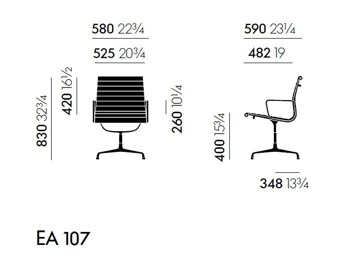 The four-star base in die-cast aluminum adds a touch of elegance to the chair, while the polished or chrome-coated finish gives it a sleek and modern look. Whether used in a home, office, or public area, the Ea 107 chair is sure to make a statement and elevate the design of any space.
